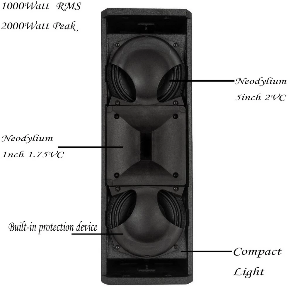 Powerful D class amp, a vertical array small in size and practical to transport – A strong bag will be included.